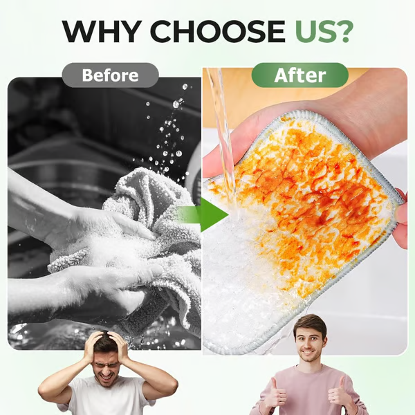 - ✔ Mehrschichtige Baumwolle: Absorbiert 3x mehr Wasser und Öl als herkömmliche Lappen.